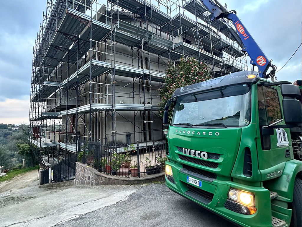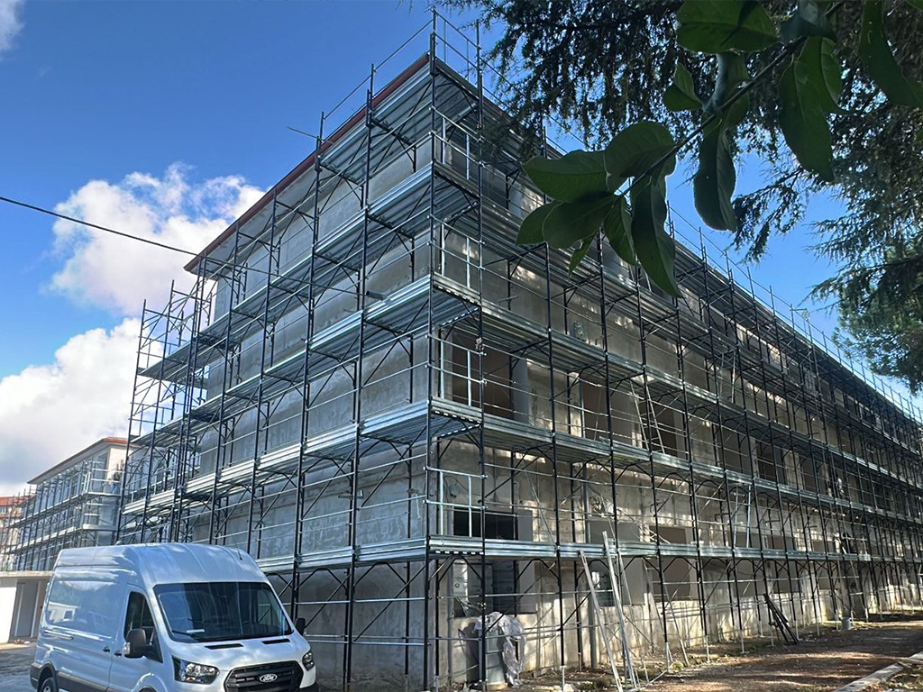 Noleggio, montaggio e smontaggio di ponteggi per facciate, interni, siti industriali e centri storici.